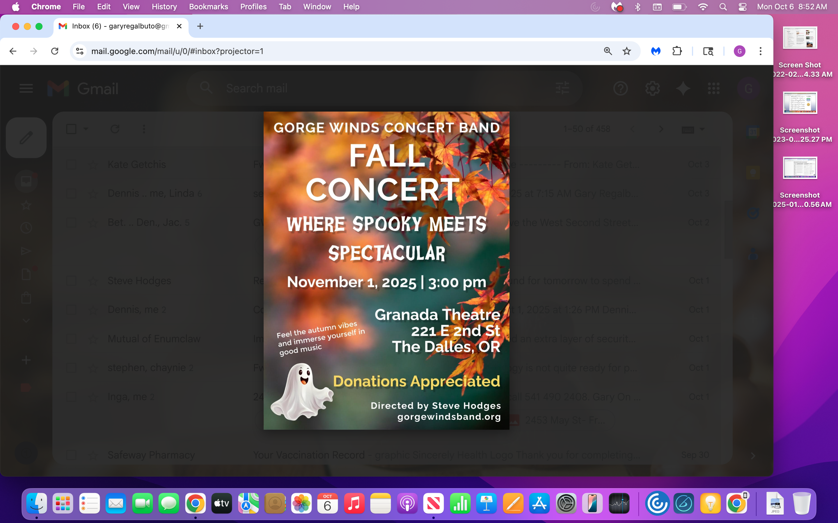 Gorge Winds Concert Band, Free Fall Concert, "Where Spooky Meets Spectacular," November 1st, 3PM at The Granada Theater, 221 E 2nd St. The Dalles. Cash Bar with Drinks and Snacks. Admission Free but Donations Gratefully Accepted