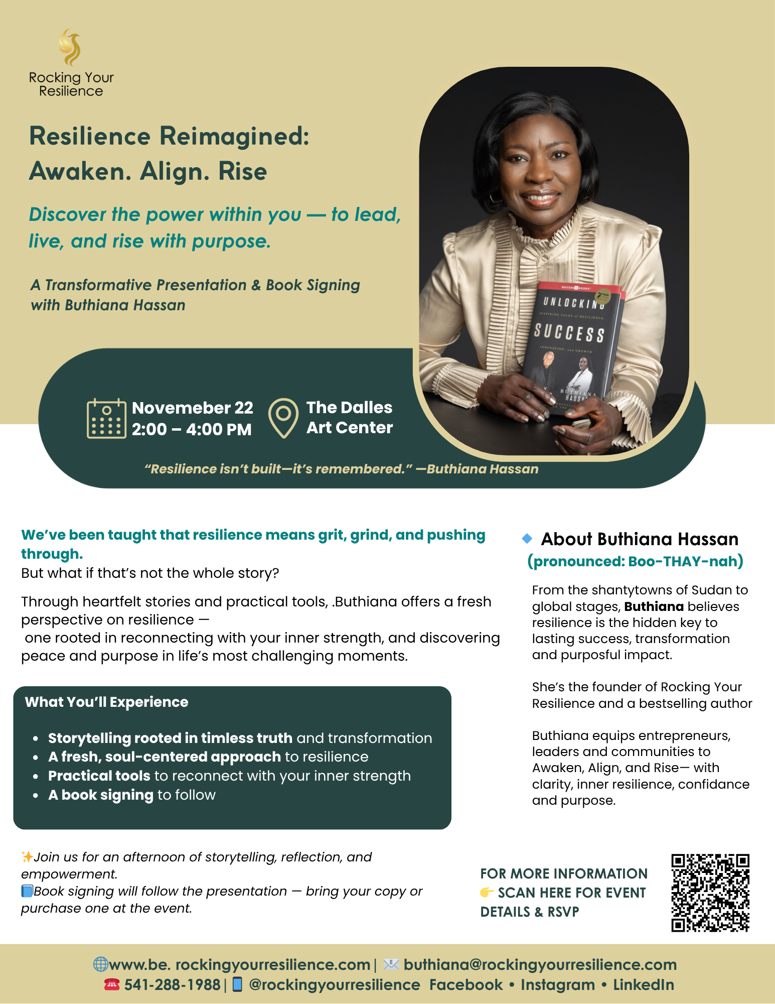 This transformative community presentation speaks to creatives, educators, entrepreneurs, leaders, parents, and seekers alike. Whether you’re navigating personal growth or professional change, you’ll leave with renewed clarity, courage, and direction.