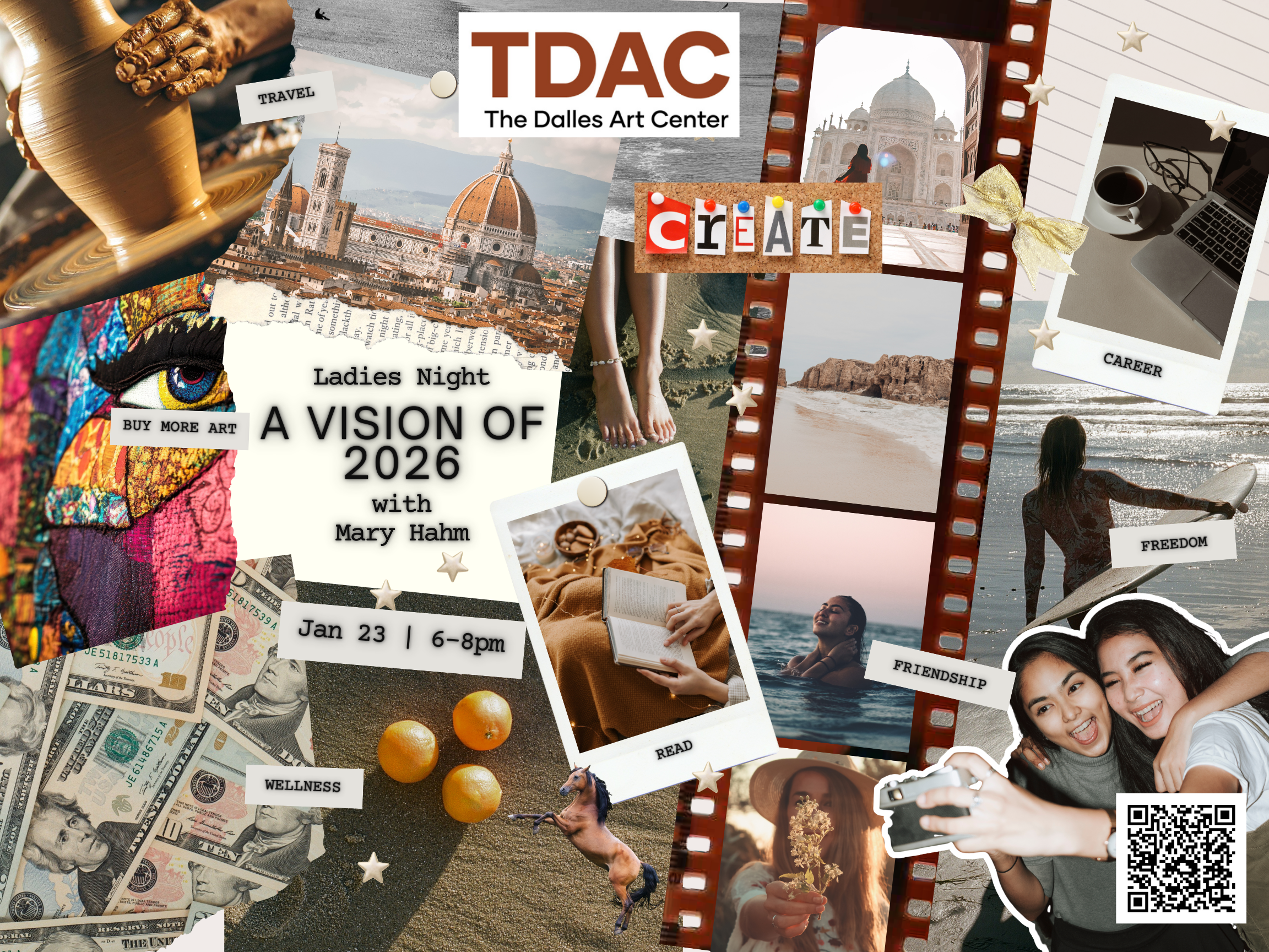 Set your intentions for the year ahead with an evening of creativity and reflection at TDAC. Led by local artist and instructor Mary Hahm, the workshop begins with a brief guided journaling session to help participants clarify their goals, values, and hopes for the coming year.