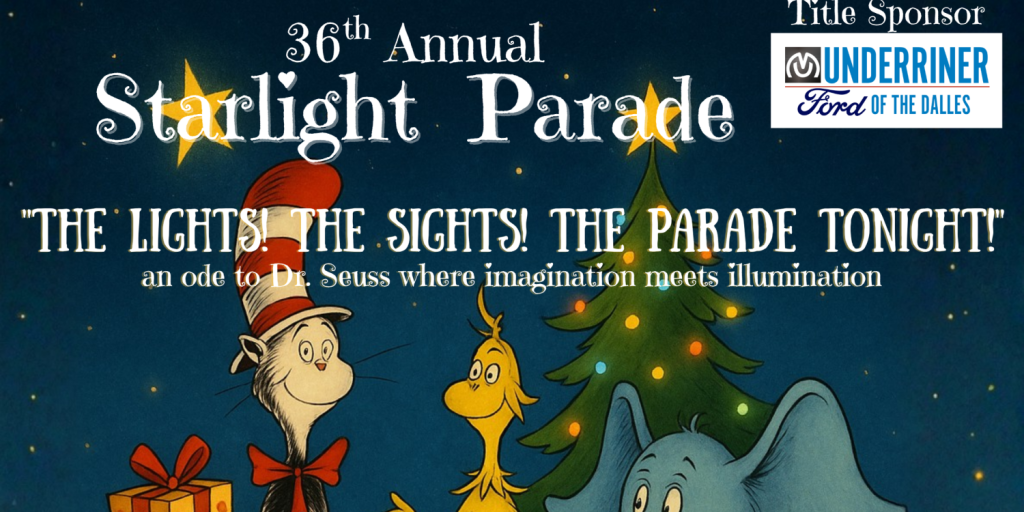 Kick off the holiday season with The Dalles’ most magical night of the year, as the streets sparkle with color, creativity, and Seussical delight. Businesses, families, and community groups are invited to light up downtown with bright colors, wild ideas, and twinkling cheer — then stay for cocoa, cookies, and the Community Tree Lighting at The Dalles Area Chamber of Commerce.